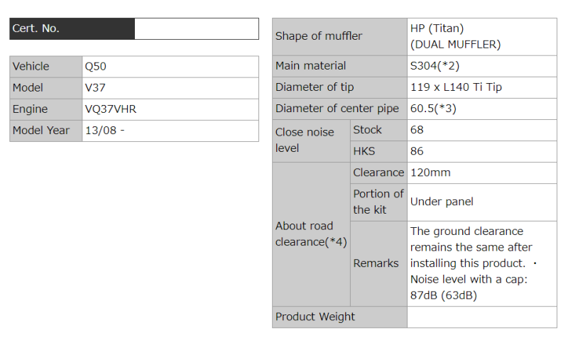 HKS Q50 VQ37 Dual Hi-Power Titanium Tip Catback Exhaust