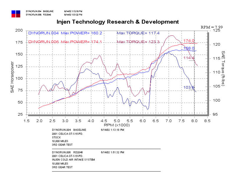 Add some easy horsepower to your Ride with this RD Series Performance cold air intake (CAI) from Injen Technology! The engineers at Injen have spent considerable amounts of time designing, testing, and perfecting this CAI to produce some serious bolt-on power while also providing amazing engine bay aesthetics. In addition to the impressive power increase, the Injen team has ensured that safe Air fuel (A/F) ratios are maintained throughout the powerband.