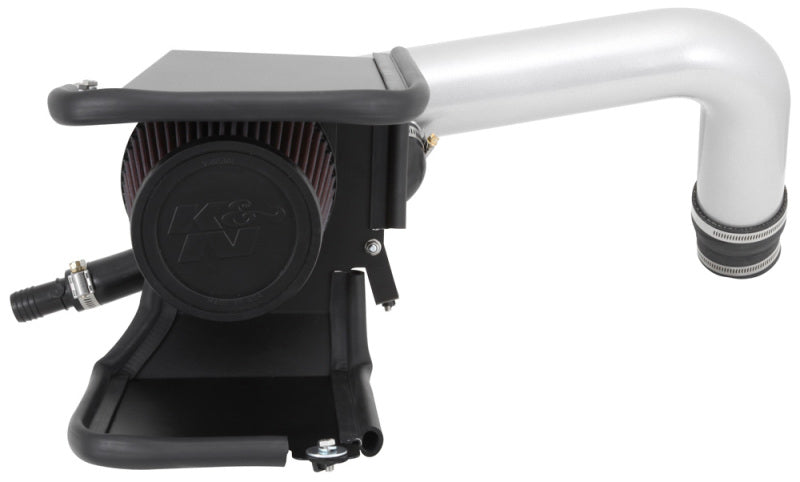 The K&N 69-5312TS Typhoon air intake system is a free-flowing, mandrel-bent aluminum tube air induction system designed to fit some Hyundai Veloster Turbo models. The restrictive factory air filter and air intake housing are replaced by the K&N Typhoon air intake which is designed to dramatically reduce air flow restriction as it smoothes and straightens air flow. This allows your engine to inhale a larger amount of air than the factory air intake. More air means more usable power and acceleration throughout the engine's RPM range. The 69-5312TS air intake comes with a black rubber topped K&N high-flow air filter and a heat shield that installs into the previous air box space. Air is directed through the intake tube into the engine's turbo inlet for a guaranteed power gain. The intake tube has an attractive silver powder-coat finish that's made to last and it accommodates the factory air injection hose and crank case vent hose. The oversized, tapered cylinder-shaped air filter can be used for up to 100,000 miles before servicing is needed depending on driving conditions. This air intake is relatively easy to install usually in 90 minutes or less using existing factory mounting points. The tools needed are a screwdriver, pliers and ratchet set. Some Typhoon air intakes are not legal for sale or use in California and other states adopting California emission standards while others are CARB exempt and 50 state legal. Check the K&N catalog or website for vehicle applications and specific CARB status for each vehicle and air intake.