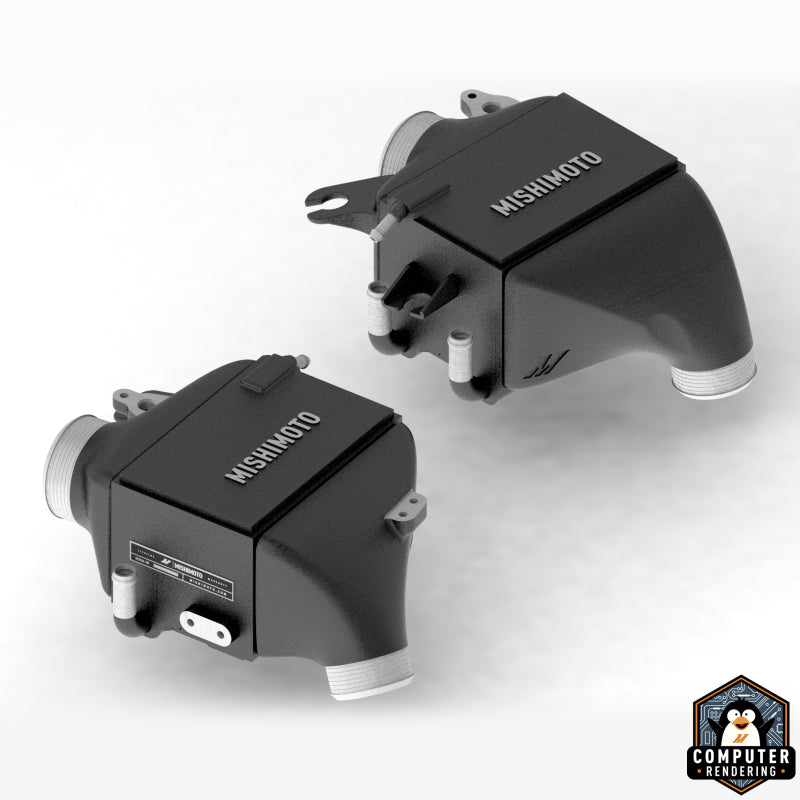 That means your turbos don’t have to work as hard, and the boost pressure they generate isn’t wasted shoving air through a restrictive intercooler. All those improvements result in dyno-proven charge air temperatures that are up to 23-degrees cooler than stock. Colder intake charge temps mean your VR30 can make the most of every drop of fuel, and we were able to produce power gains of up to 8 HP and 12 lb.-ft of torque without a retune. We also know that high boost pressures require strong components, which is why we constructed our intercoolers with cast aluminum end tanks. This design eliminates potential leak points and stress concentrations that welded tanks may suffer from. The included ancillary hoses and couplers ensure coolant and air flow reliably through the intercoolers, and the included engine cover spacers let you keep your extra cooling hidden for a stealth approach. Like all Mishimoto products, these performance intercoolers for the 2016+ Q50/Q60 3.0T are backed by our Mishimoto Lifetime Warranty.